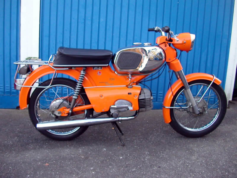 Fahrzeug mit einem 50 cm³-Motor und 2,2 PS Leistung. Das ab 1957 verkaufte Zweirad "Florett" mit Gebläsekühlung. Das am besten motorisierte Modell wurde das in den Siebzigern mit 6,25 PS und Fahrtwind gekühlte "Florett RS".